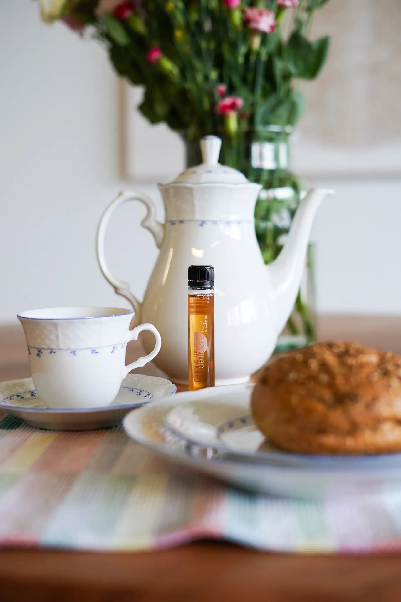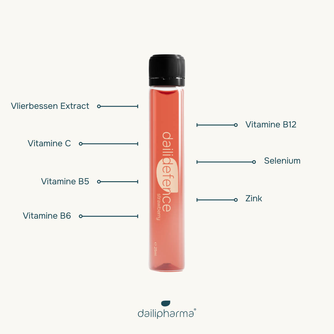 Ingrediënten: Water, elderberry extract, L-ascorbinezuur, zinkcitraat, vitamine B12, vitamine B5, selenium, vitamine B6, aroma, citroenzuur, kaliumsorbaat, sucralose.