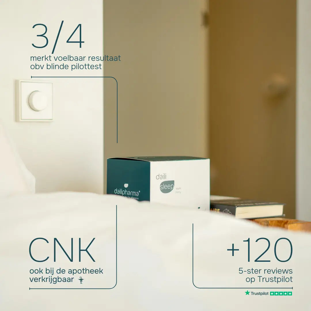 (¹)Valeriaan en Melatonine dragen bij tot sneller inslapen. Valeriaan draagt bij tot een natuurlijke slaap. Vitamine B6 en Vitamine C dragen bij tot een normale werking van het zenuwstelsel.